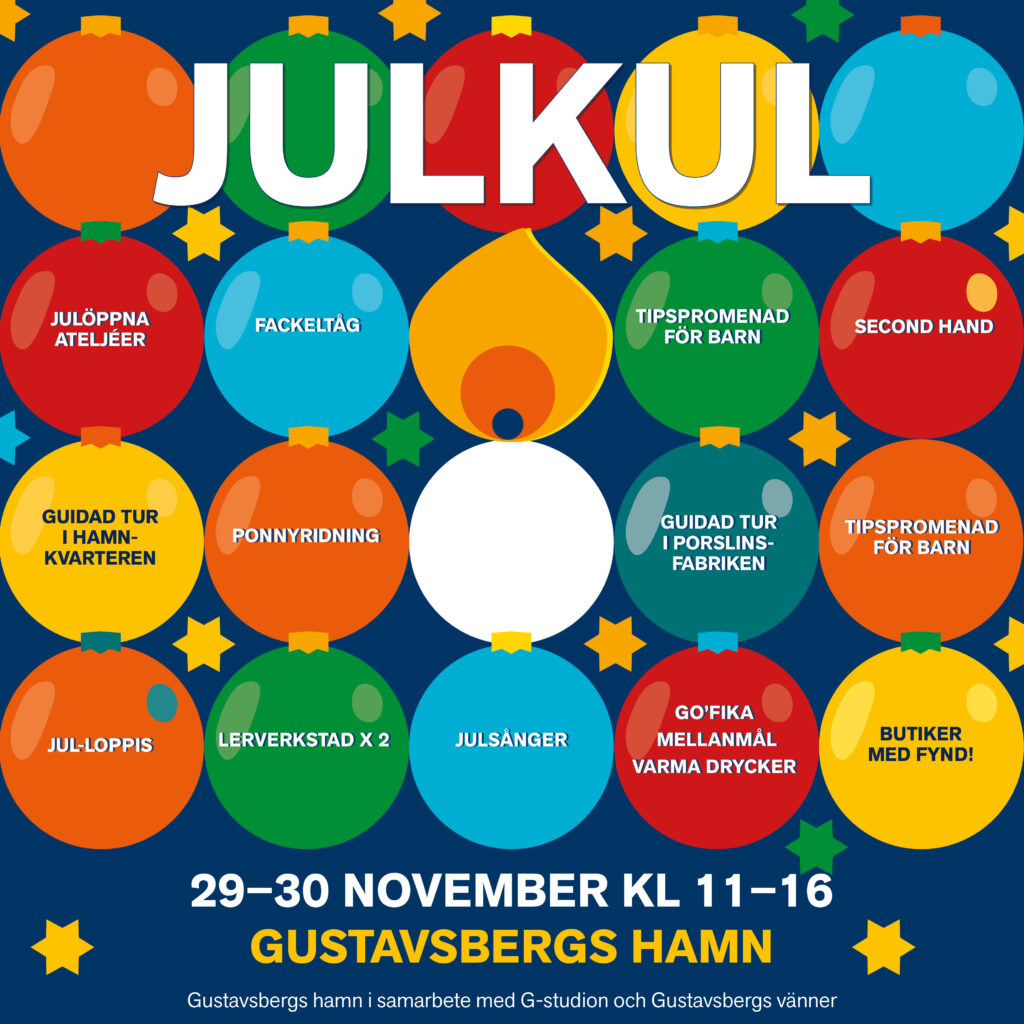 Vad lockar mest? Guidad tur i Porslinsrikets hamnkvarter? Tipspromenad för alla barn? Ponnyridning? Fynda på Jul-loppisen? En magisk guidning genom Porslinsfabriken med historia, berättelser och insikt i hantverket? Second hand, gofika? Eller alla julöppna ateljéer?