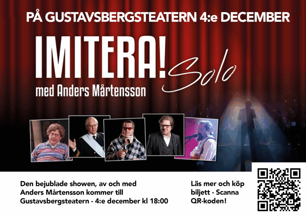 ”Imitera! Solo”– En bejublad show med humor och imitationer kommer till Gustavsberg. Den 4:e december kl 18:00 på Gustavsbergsteatern